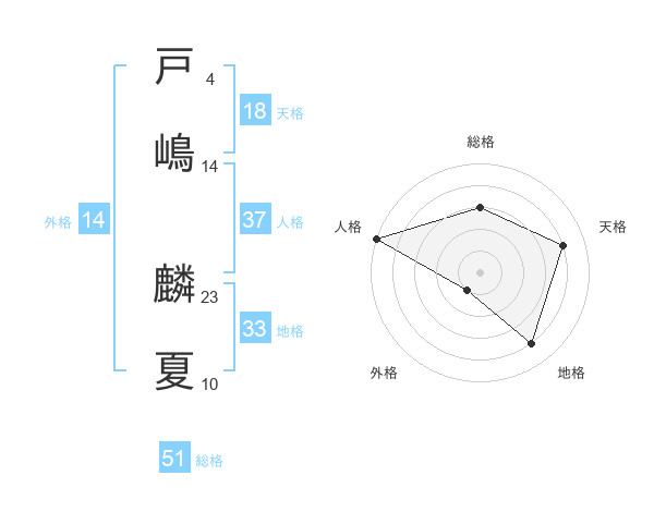 戸嶋 麟夏さんの総格は51画の3点!