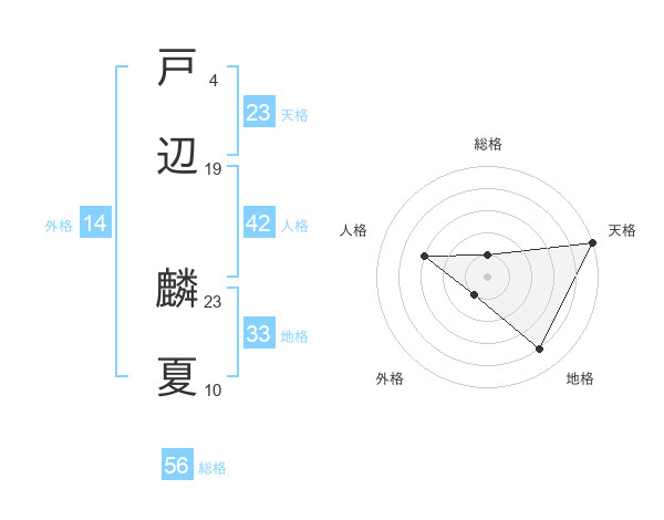 戸辺 麟夏さんの天格は23画の5点!