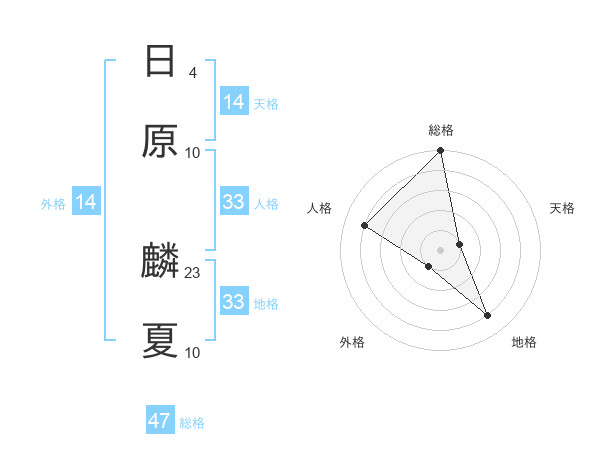 日原 麟夏さんの総格は47画の5点!