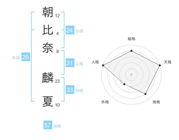 朝比奈 麟夏さんを姓名の画数から五運を鑑定