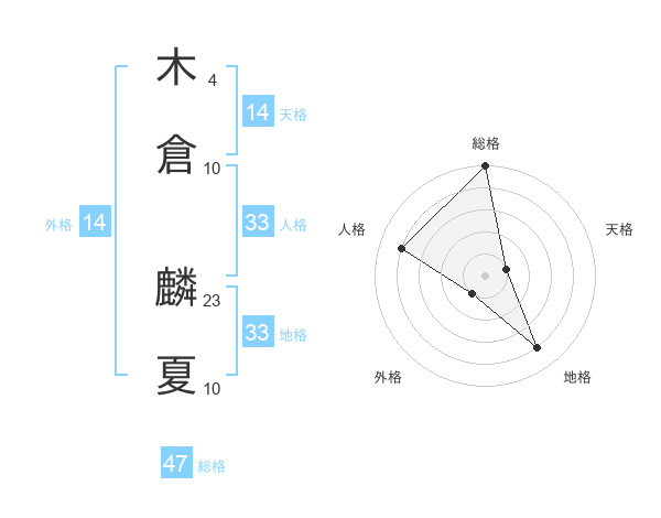 木倉 麟夏さんの総格は47画の5点!