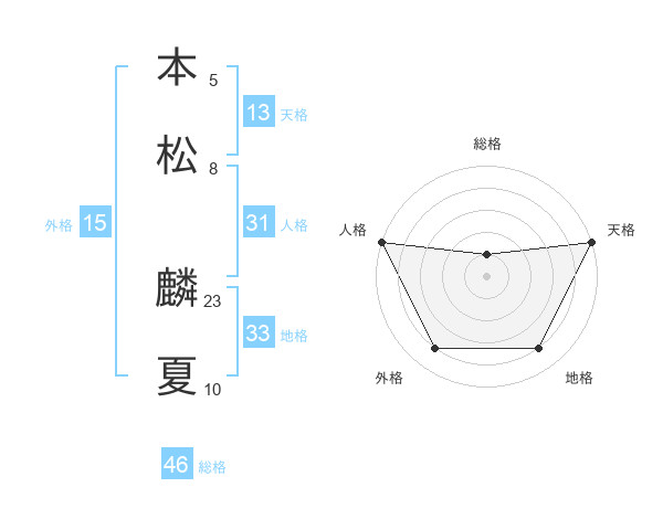 本松 麟夏さんの外格は15画の4点!