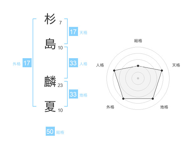 杉島 麟夏さんの総格は50画の2点!