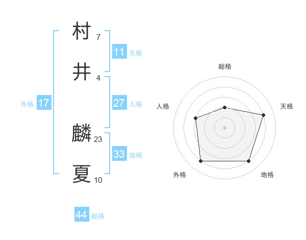 村井 麟夏さんの天格は11画の4点!