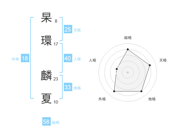杲環 麟夏さんの総格は58画の4点!