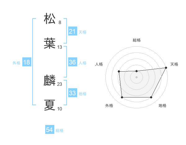 松葉 麟夏さんの総格は54画の1点!