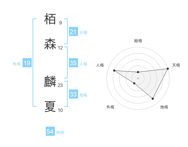 栢森 麟夏さんの総格は54画の1点!