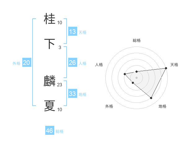 桂下 麟夏さんの天格は13画の5点!