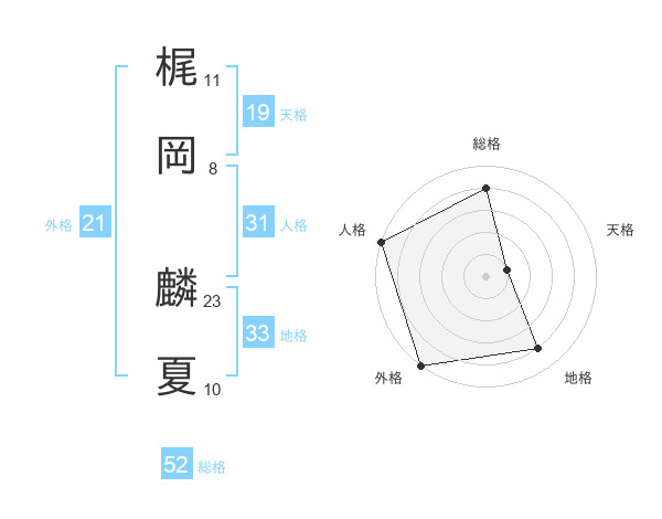 梶岡 麟夏さんの総格は52画の4点!