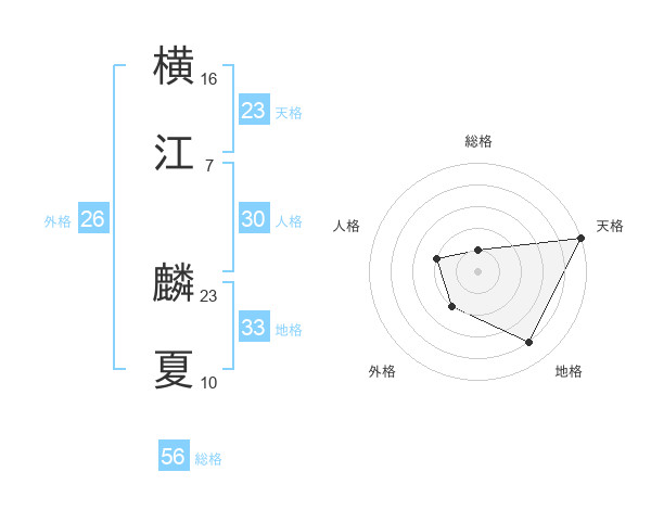横江 麟夏さんを姓名の画数から五運を鑑定
