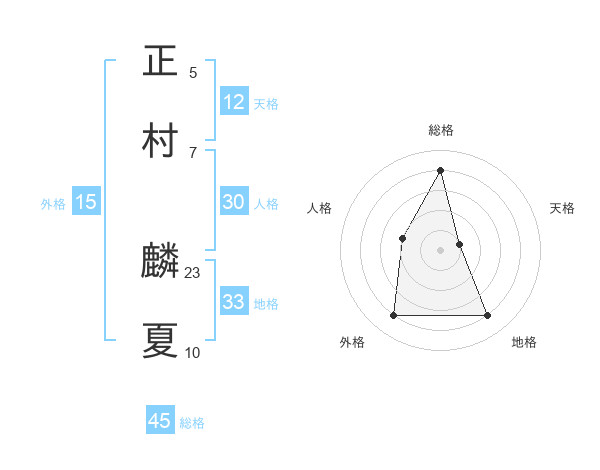 正村 麟夏さんを姓名の画数から五運を鑑定