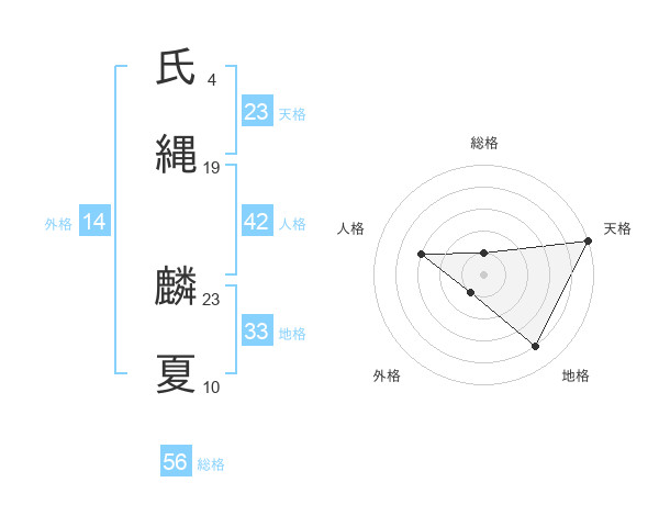 氏縄 麟夏さんの天格は23画の5点!