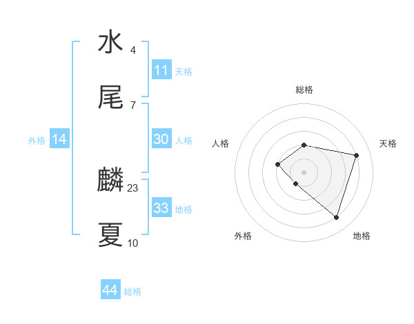 水尾 麟夏さんを姓名の画数から五運を鑑定
