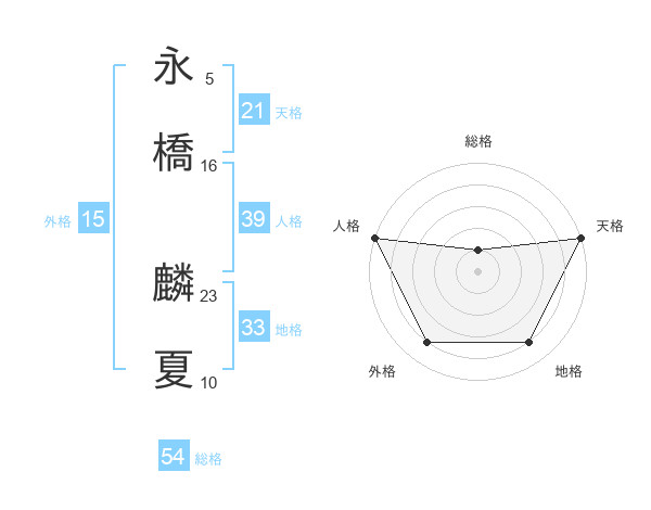 永橋 麟夏さんの総格は54画の1点!