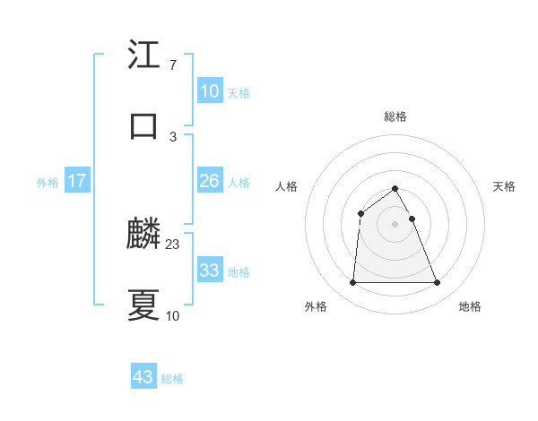 江口 麟夏さんを姓名の画数から五運を鑑定