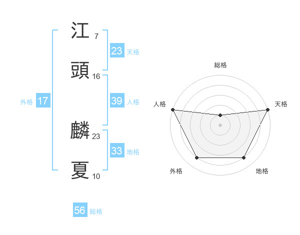 江頭 麟夏さんを姓名の画数から五運を鑑定