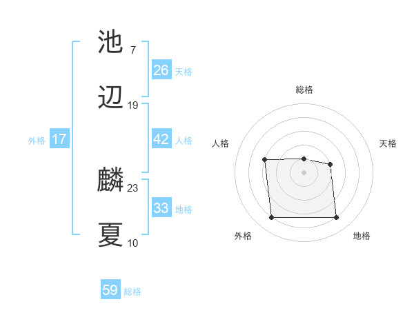 池辺 麟夏さんを姓名の画数から五運を鑑定