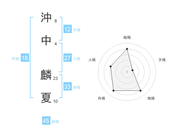 沖中 麟夏さんの総格は45画の4点!