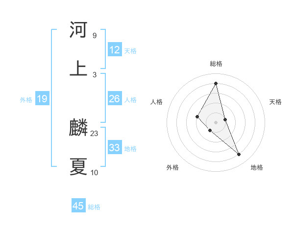 河上 麟夏さんの総格は45画の4点!