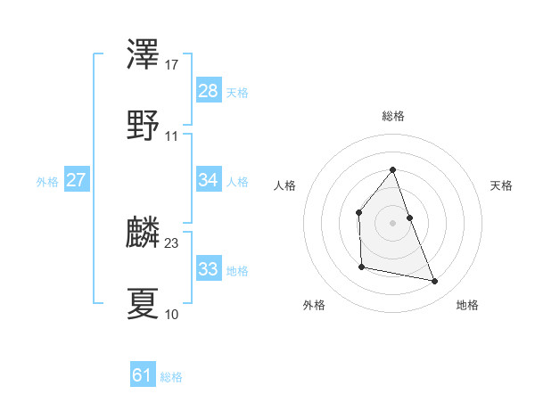 澤野 麟夏さんの総格は61画の3点!