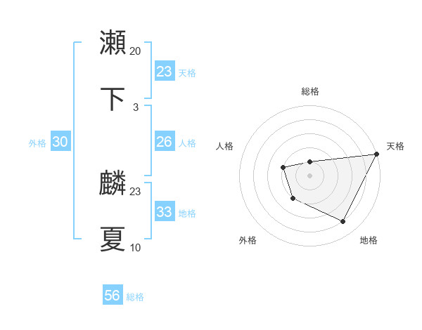 瀬下 麟夏さんの天格は23画の5点!