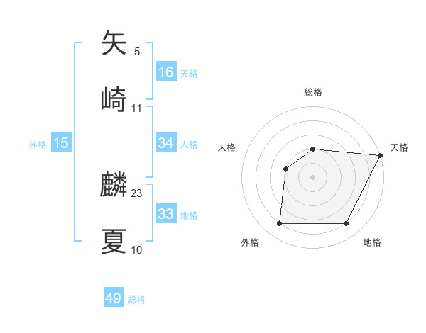 矢崎 麟夏さんの総格は49画の2点!