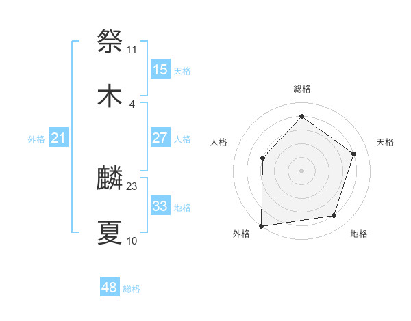 祭木 麟夏さんを姓名の画数から五運を鑑定