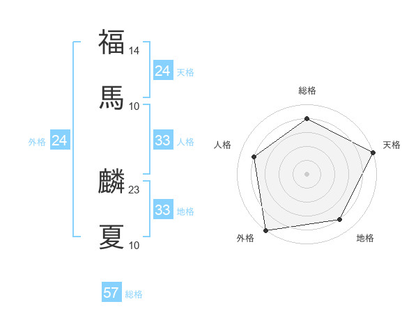 福馬 麟夏さんを姓名の画数から五運を鑑定