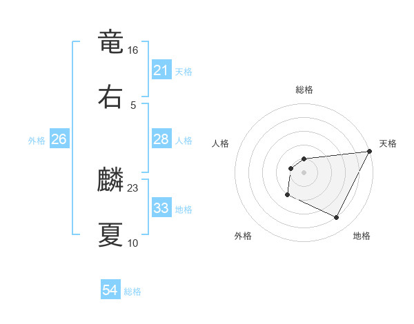 竜右 麟夏さんを姓名の画数から五運を鑑定