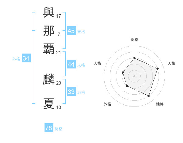 與那覇 麟夏さんの天格は45画の4点!