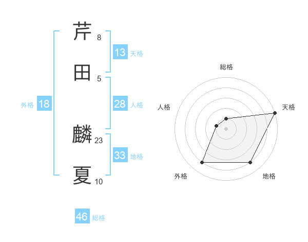芹田 麟夏さんを姓名の画数から五運を鑑定
