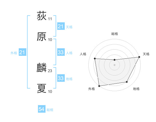 荻原 麟夏さんを姓名の画数から五運を鑑定