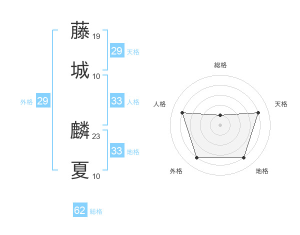 藤城 麟夏さんの地格は33画の4点!