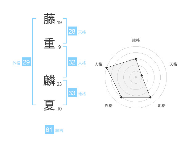 藤重 麟夏さんの外格は29画の4点!