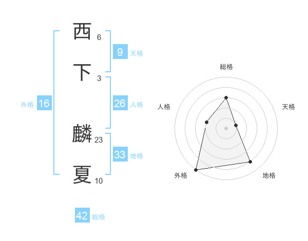 西下 麟夏さんの外格は16画の5点!