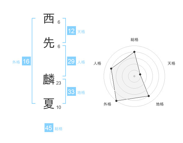 西先 麟夏さんの総格は45画の4点!