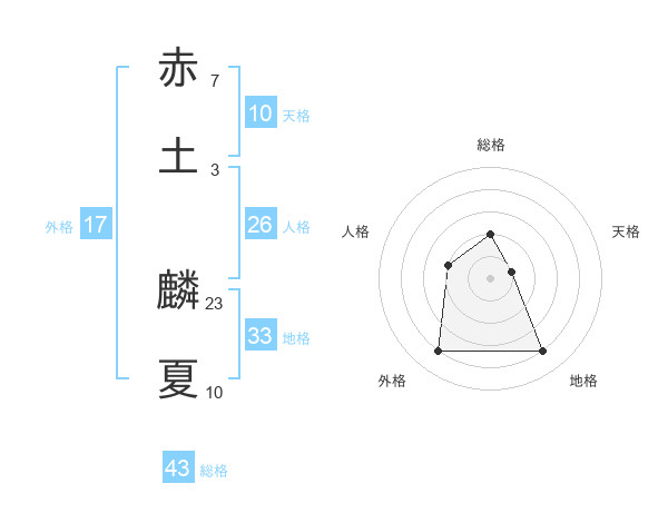 赤土 麟夏さんを姓名の画数から五運を鑑定