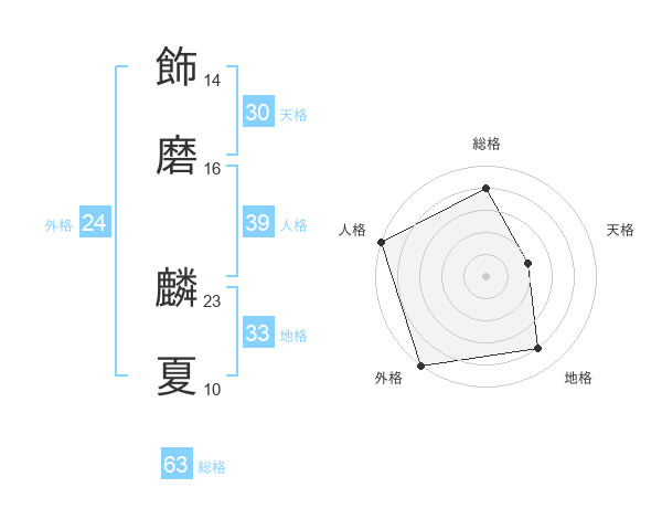 飾磨 麟夏さんの総格は63画の4点!
