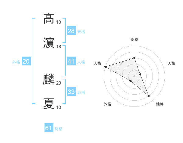 髙濵 麟夏さんを姓名の画数から五運を鑑定