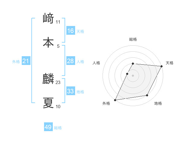 﨑本 麟夏さんの天格は16画の5点!