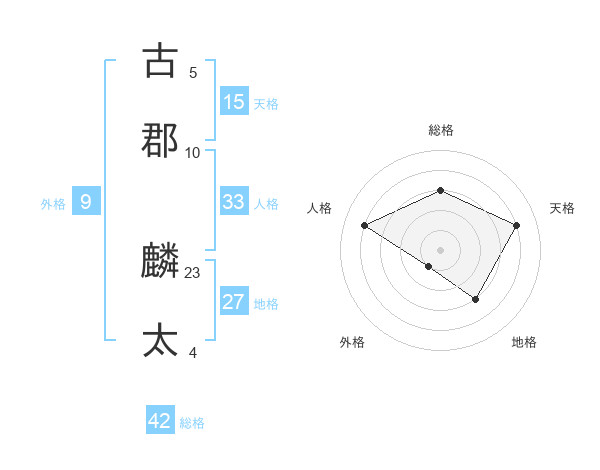 古郡 麟太さんを姓名の画数から五運を鑑定