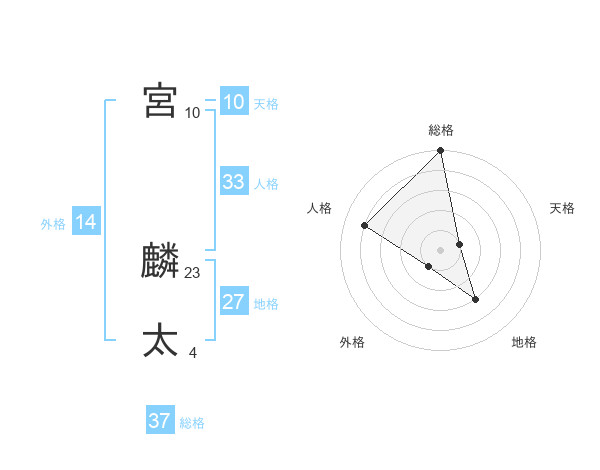 宮 麟太さんの総格は37画の5点!