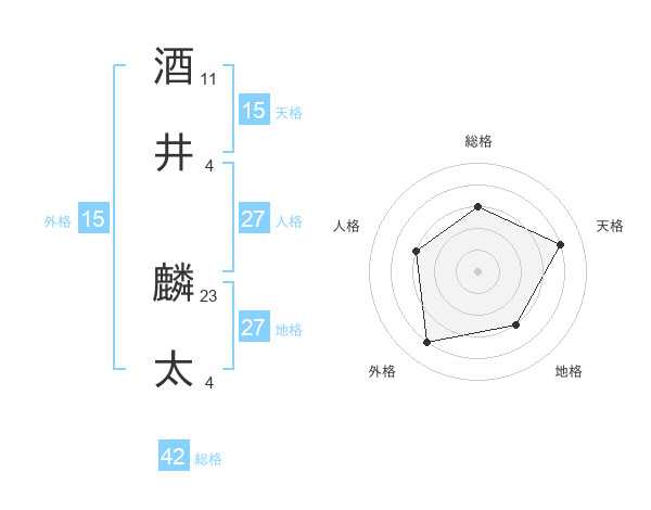 酒井 麟太さんを姓名の画数から五運を鑑定