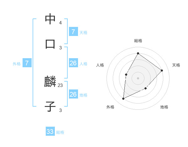 中口 麟子さんの総格は33画の4点!