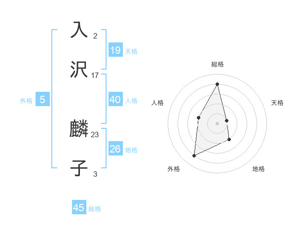 入沢 麟子さんの総格は45画の4点!