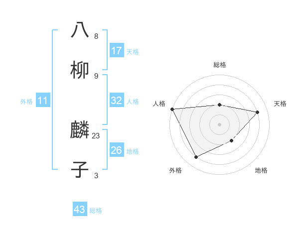 八柳 麟子さんの天格は17画の4点!