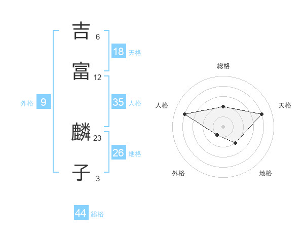 吉富 麟子さんの天格は18画の4点!