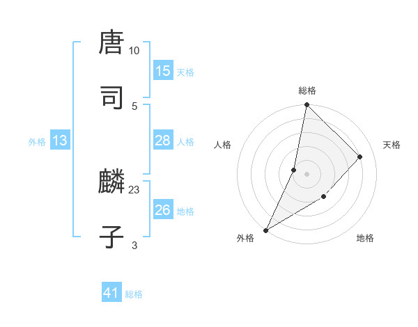 唐司 麟子さんを姓名の画数から五運を鑑定