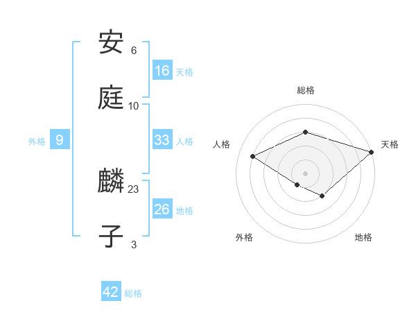 安庭 麟子さんを姓名の画数から五運を鑑定