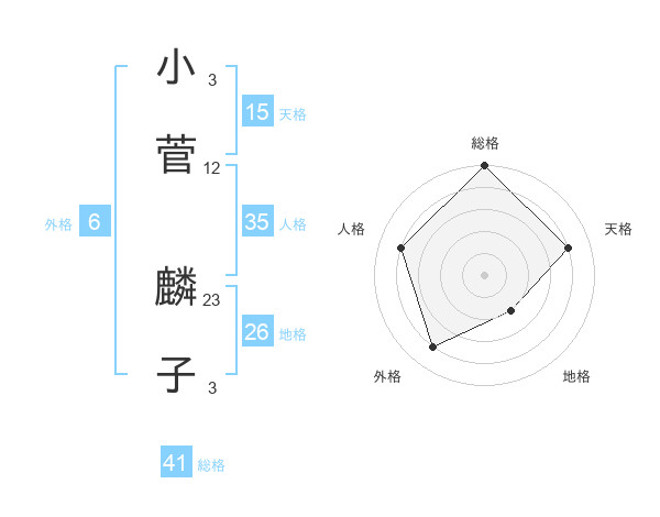 小菅 麟子さんの天格は15画の4点!